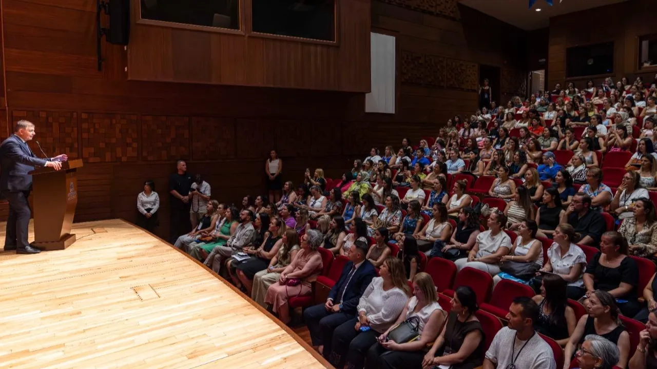 İzmir Büyükşehir Belediye Başkanı Dr. Cemil Tugay, “Eşit Bir Başlangıç, Parlak Bir Gelecek” başlıklı 2025-2026 Yuvamız İzmir Çocuk Etkinlik Merkezleri Hizmet İçi Eğitim Semineri’nin açılışına katıldı. Açılış töreninde İZELMAN AŞ Yönetim Kurulu Başkanı Aybala Yentürk, İZELMAN Genel Müdürü Yılmaz Mede, Genel Müdür Yardımcısı Merve Doğan Gürsel, Yuvamız İzmir Çocuk Etkinlik Merkezleri Müdürü Eda Kaygusuz de yer aldı.