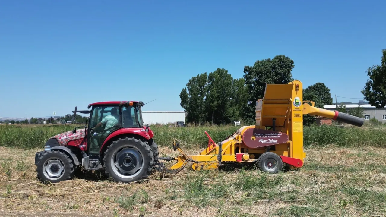 Bursa İnegöl Belediyesi’nin geçtiğimiz yıl hizmete sunduğu kuru fasulye hasat makinesi, yeni sezonla birlikte yeniden sahaya indi.BURSA (İGFA) - İnegöl Belediyesi’nin üreticiye katkı sunmak adına geçtiğimiz yıl ücretsiz olarak hizmete sunduğu kuru fasulye hasat makinesi yeni sezon fasulye hasadına başladı. 2 ay boyunca üreticiler İnegöl Belediyesi Muhtarlık İşleri Müdürlüğüne kayıt yaptırarak hasat makinesinden ücretsiz olarak faydalanabilecek.