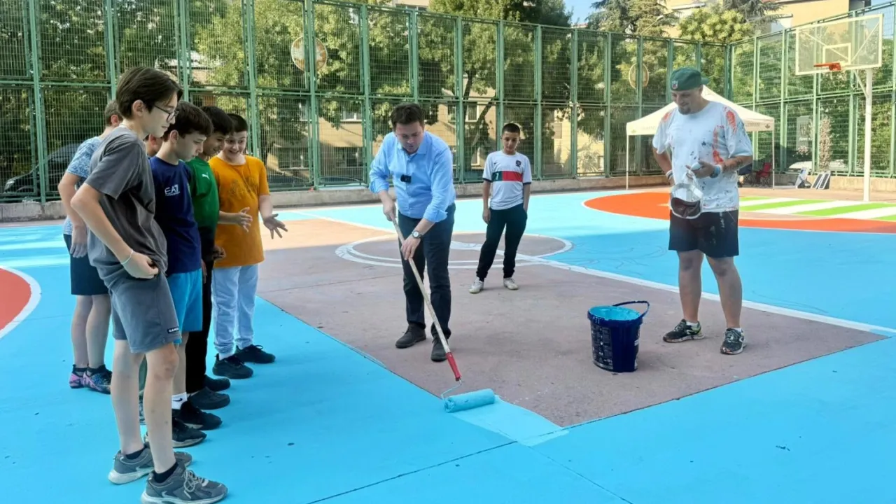 Bursa Osmangazi'de basketbol sahalarını güzelleştirmek adına düzenlenen ‘Basketbol Sahaları Zemin Tasarımı Yarışması'nda dereceye giren tasarımlar, ilçedeki basketbol sahalarına uygulanmaya başlandı. Osmangazi Belediye Başkanı Erkan Aydın, eline fırça alarak gençlerle birlikte basketbol sahasını boyadı.BURSA (İGFA) - Osmangazi Belediyesi’nin Zeki Müren Güzel Sanatlar Lisesi ve Bursaspor Basketbol iş birliğinde düzenlediği ‘Basketbol Sahaları Zemin Tasarımı Yarışması'na, Zeki Müren Güzel Sanatlar Lisesi öğrencileri 14 tasarım ile katıldı.