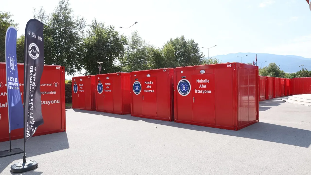 Bursa Büyükşehir Belediyesi, 17 Ağustos 1999 Marmara Depremi’nin 26. yıl dönümünde ‘Mahalle Afet İstasyonları’nı hizmete aldı. İlk etapta 42 mahalleye yerleştirilecek istasyonların sayısı yıl sonuna kadar 100’e ulaşacak. Başkan Mustafa Bozbey, afetlere karşı ‘Mahalle Afet Gönüllüleri’ projesini başlattıklarını duyurdu.BURSA (İGFA) - Bursa Büyükşehir Belediyesi, deprem kuşağında yer alan kentin dirençli ve sürdürülebilir olması için ‘Mahalle Afet İstasyonları’nı hayata geçirdi.