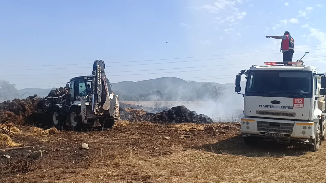 BİLECİK (İGFA) - Olay, Doğanlar Mahallesi Çiğdemlik mevkiinde meydana geldi. Hüseyin Çakır’a ait çiftlikte henüz bilinmeyen bir nedenle alevler bir anda yükseldi. Kısa sürede büyüyen yangına Pazaryeri Belediyesi itfaiye ekipleri hızla müdahale etti. Yoğun çabalar sonucu alevler kontrol altına alınırken, çok sayıda saman balyası kül oldu.