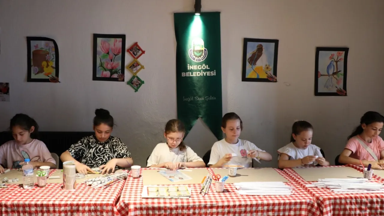 Bursa İnegöl Belediyesi yaz tatilinde düzenlediği ücretsiz Sanat Atölyesi etkinlikleriyle çocukların kaliteli ve tatil süreci geçirmesini sağlıyor. Minikler çocuk sanat atölyelerinde hem eğleniyor hem öğreniyor.BURSA (İGFA) - Yaz tatiliyle beraber çocuklara yönelik etkinliklerin de startını veren İnegöl Belediyesi, Temmuz ve Ağustos aylarında 2 ayrı dönem şeklinde Çocuk Sanat Atölyesi etkinlikleri düzenledi. Her dönemde 100 öğrenci olmak üzere yaz boyunca 200 öğrencinin faydalanacağı sanat atölyeleri, 8-13 yaş grubuna yönelik gerçekleştiriliyor. Sanat atölyelerinde çocuklar hem eğleniyor hem de yeteneklerini keşfediyorlar.