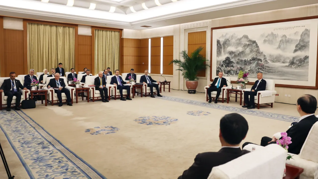 Şanghay İşbirliği Örgütü’nün (ŞİÖ) 25. Devlet Başkanları Konseyi Zirvesi'ne katılmak üzere Çin'in Tiencin şehrinde bulunan Cumhurbaşkanı Erdoğan, zirve marjındaki temaslarını sürdürüyor.ANKARA (İGFA) - Cumhurbaşkanı Recep Tayyip Erdoğan, Tiencin Konukevi'nde Çin Komünist Partisi Merkez Komitesi Birinci Sekreteri Say Çi ile çalışma yemeğinde bir araya geldi.