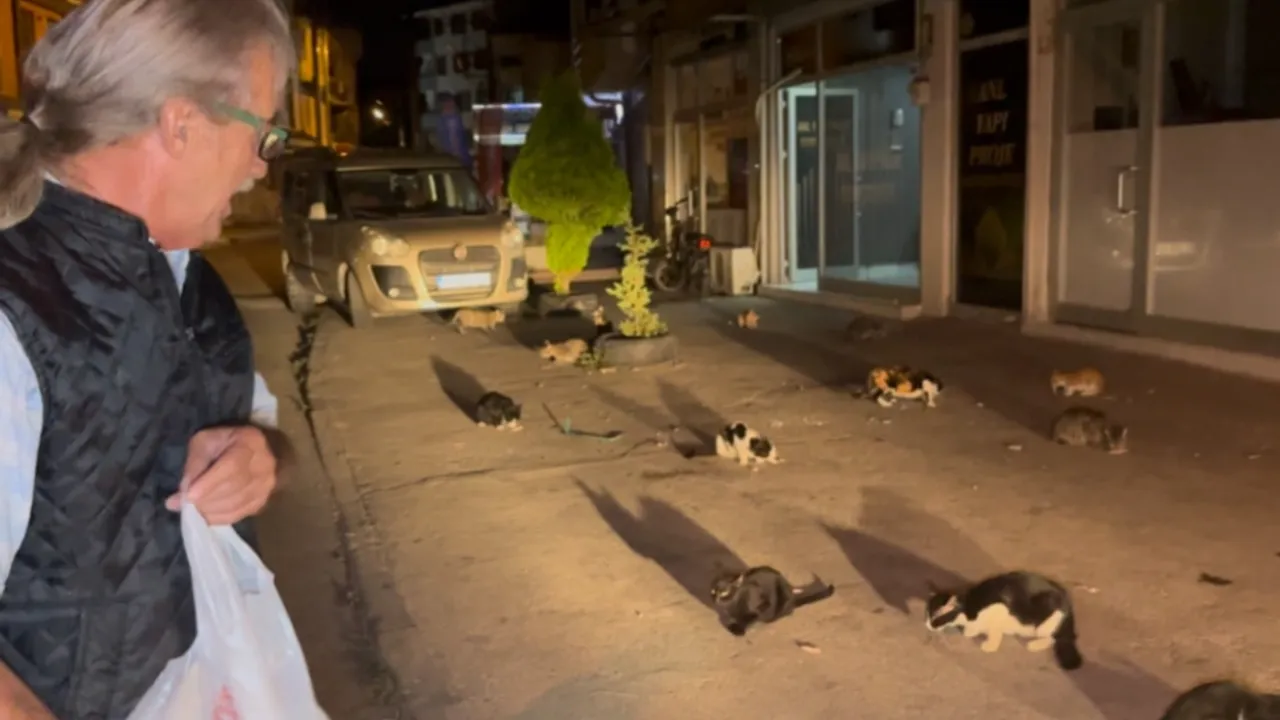 Düzce’nin Nusrettin Mahallesi’nde yaşayan Veysel Kaya, yıllardır mahallesindeki sahipsiz sokak kedilerini kendi imkânlarıyla besliyor. Kaya, her gün tavuk kanat ucu veya kedi maması alarak yaklaşık 45 sokak kedisinin bakımını üstleniyor.Sefer DEMİR / DÜZCE (İGFA) - Düzce'de evinin önünde baktığı kediler nedeniyle şikâyet edilip evden çıkarılmakla tehdit edildiğini belirten Veysel Kaya, hayvanlara sokakta bakmaya devam ettiğini söyledi.