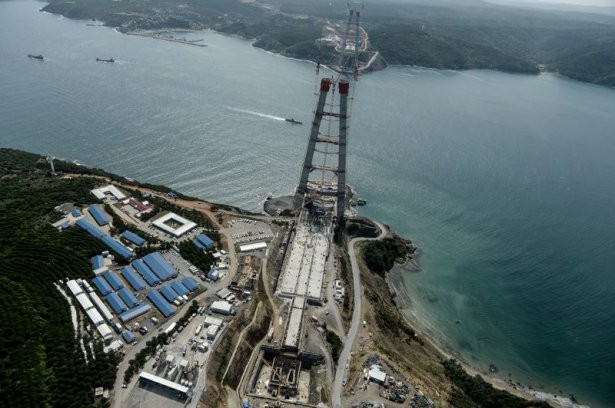 Tamamlandığında şehir trafiğini tır ve kamyon yoğunluğundan kurtarması beklenen Yavuz Sultan Selim Köprüsü havadan görüntülendi.