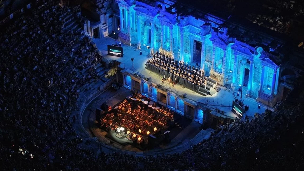 Pamukkale’nin tarihi Hierapolis Antik Tiyatrosu’nda sahnelenen konser, binlerce yıllık taşların arasında yankılanan ezgilerle izleyicilere adeta zaman yolculuğu yaşattı. Carl Orff’un dünyaca ünlü sahne kantatı Carmina Burana, İzmir Devlet Opera ve Balesi sanatçılarının muhteşem performansı ile sahneye taşındı. 75 dakika süren tek perdelik dev eser, Orkestra Şefi Vladimir Lungu, Koro Şefi Öner Özcan ve Çocuk Koro Şefi Başar Ünal yönetiminde sahnelendi. 212 sanatçının aynı anda sahnede yer aldığı performans, sanatseverlerden dakikalarca ayakta alkış aldı. Denizlili vatandaşlar, hem tarihi mirasın içinde hem de evrensel sanatın büyüsü ile buluştukları için organizasyondan duydukları memnuniyeti dile getirerek Başkan Çavuşoğlu’na teşekkür etti.