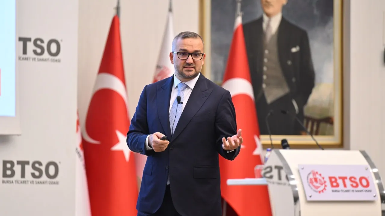 BTSO, Merkez Bankası Başkanı Fatih Karahan ile iş dünyasını buluşturdu. BTSO Başkanı İbrahim Burkay, enflasyonla mücadelede sıkı para politikalarının finansmanı zorlaştırdığını, KOBİ’lerin desteklenmesi ve politika faizinde 10 puanlık indirim gerektiğini vurgularken, TCMB Başkanı Karahan, enflasyonun yıl sonunda yüzde 29’un altına düşeceğini öngördü.BURSA (İGFA) - Bursa Ticaret ve Sanayi Odası (BTSO), Merkez Bankası Başkanı Fatih Karahan’ın katılımıyla düzenlenen istişare toplantısında iş dünyasının gündemini masaya yatırdı.
