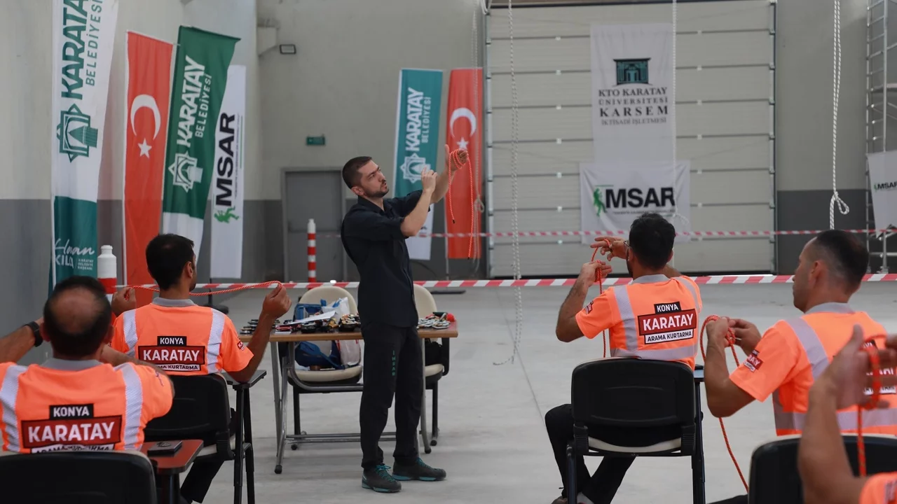 Karatay Belediyesi Afet İşleri Müdürlüğü bünyesinde kurulan 60 kişilik ekip, bugüne kadar “Afet ve Yangın Eğitimi” ile “Arama ve Kurtarma Eğitimi”ni başarıyla tamamladı. Ekipler şimdi de “Temel İple Erişim Eğitimi Seviye-1” eğitimi ile yüksekte çalışma gerektiren görevlerde ip destekli erişim sistemlerini güvenle kullanmayı öğreniyor.