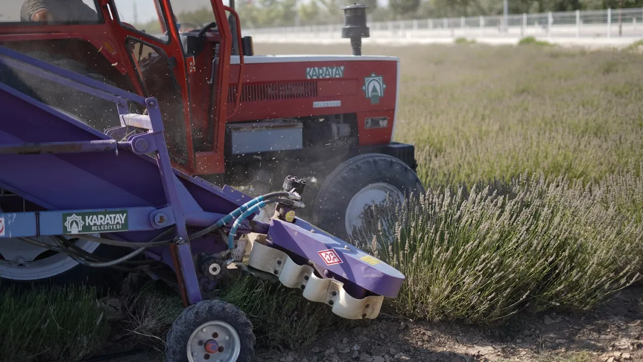 Konya’nın önemli turizm ve üretim alanlarından biri haline gelen Karatay Lavanta Bahçeleri’nde hasat dönemi başladı. Toplanan lavantalar, birçok farklı sektörde ekonomik değere dönüştürülüyor.KONYA (İGFA) - Konya'da Karatay Lavanta Bahçeleri’nde hasat gerçekleştirildi. Bir ay boyunca yerli ve yabancı yüz binlerce ziyaretçiye ev sahipliği yapan bahçede toplanan lavantalar; gazoz, dondurma, sabun, mum, krem ve lavanta yağı gibi birçok ürünün hammaddesi olarak değerlendirilecek.