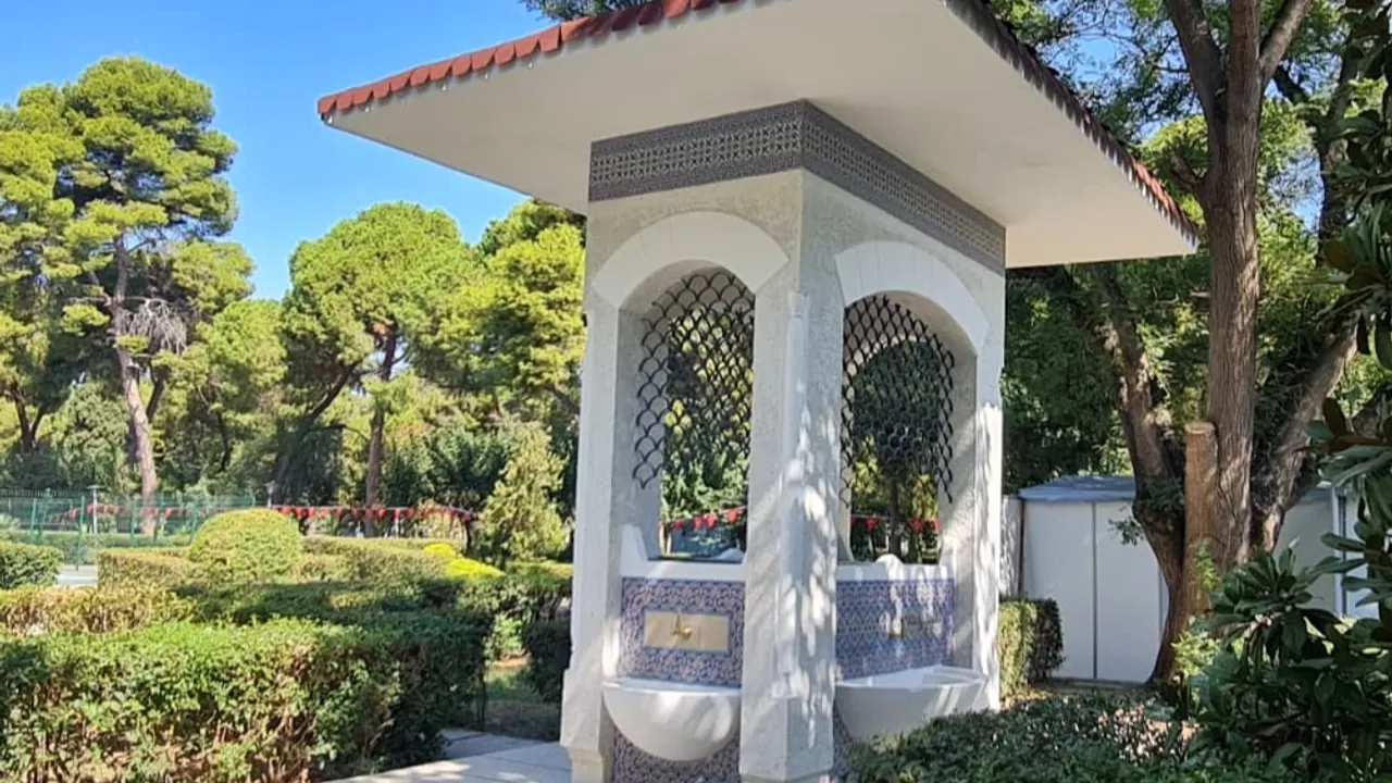 Kültürpark Tarihi Çinili Çeşme, 1967 yılında düzenlenen 36’ncı İzmir Enternasyonal Fuarı için Mimar Bedri Kökten tarafından inşa edildi. İstanbul Tophane Nusretiye Camii Çeşmesi’nden esinlenen bu ampir üsluptaki yapı, sütunları, yuvarlak kemerleri ve geniş saçağıyla dönemin simgelerinden oldu. Dört köşesindeki musluklarıyla yıllarca fuar ziyaretçilerinin serinleme noktası olan simge, gelecek nesillere yeni izler bırakmak için yenilenerek 94’üncü İzmir Enternasyonal Fuarı’na hazırlandı.