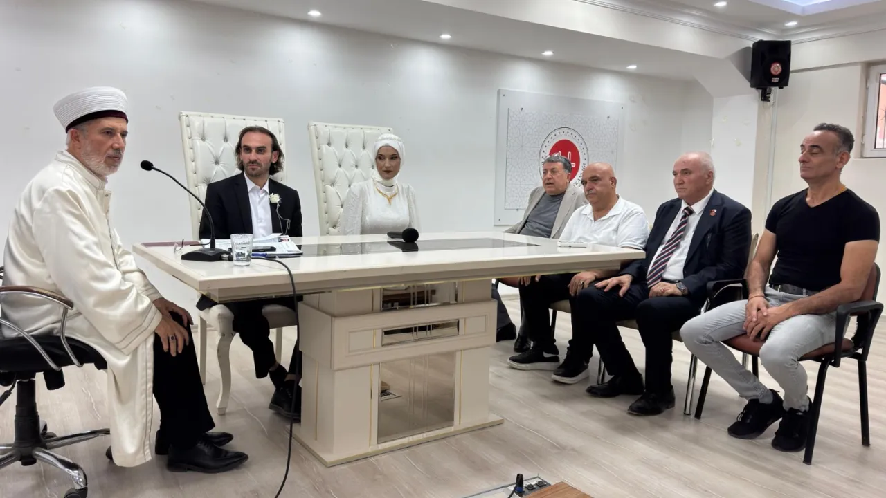 KİLİS (İGFA) - Nikah töreni, Kilis İl Müftülüğü Konferans Salonu’nda düzenlendi. Sade ama anlamlı atmosferiyle dikkat çeken törende, çiftin nikah akdi Kilis İl Müftüsü Alettin Bozkurt tarafından gerçekleştirildi. Müftü Bozkurt, nikah duası öncesinde evliliğin manevî değerine dair kısa bir konuşma yaparak evliliğin sadece bir birliktelik değil, aynı zamanda bir sorumluluk ve merhamet ilişkisi olduğunu söyleyerek Hadis-i Şerif ile taçlandırdı.