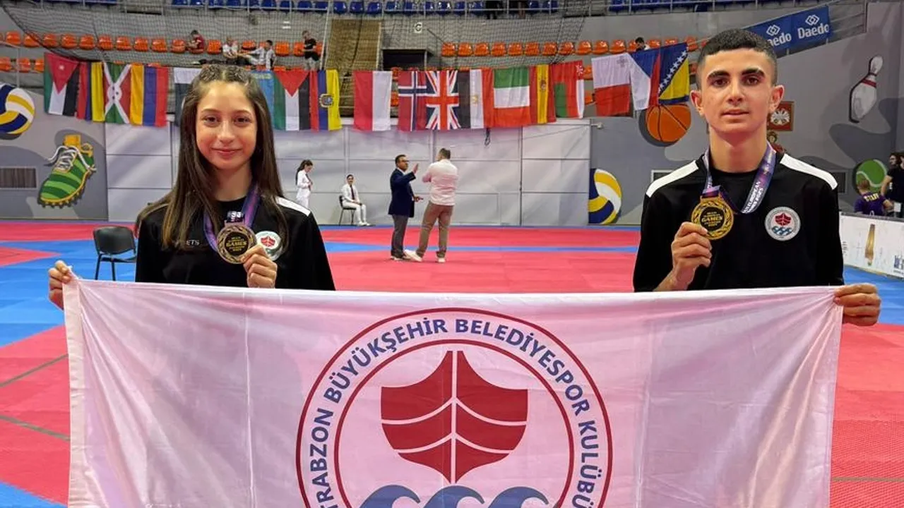 TRABZON (İGFA) - Trabzon Büyükşehir Belediyespor Kulübü sporcuları başarıları ile gururlandırmaya devam ediyor. 28–31 Ağustos tarihlerinde Sırbistan’da düzenlenen Multi Avrupa Oyunları Tekvando Şampiyonası’nda 45 kiloda Nuri Nisir birinci olurken 41 kiloda İpek Azra Kaya ikinci oldu.