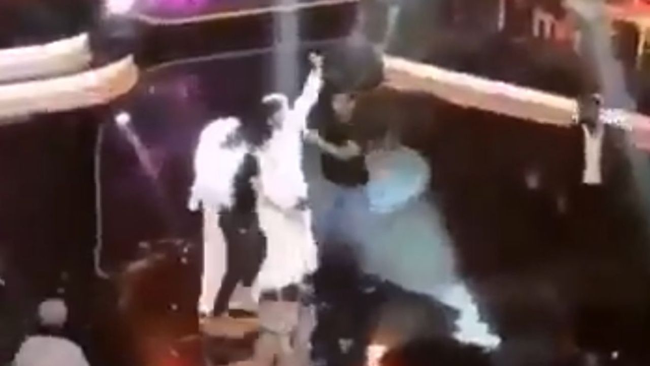 Öfkeli kalabalık sahneye çıkarak El-Menhali’yi sahneden uzaklaştırdı.